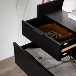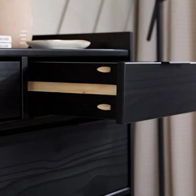 - 2 small drawers and 4 wide drawers with wood runners