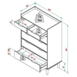 - Weight capacities: Top surface 75 lbs., small drawers 15 lbs. each, large drawers 20 lbs. each